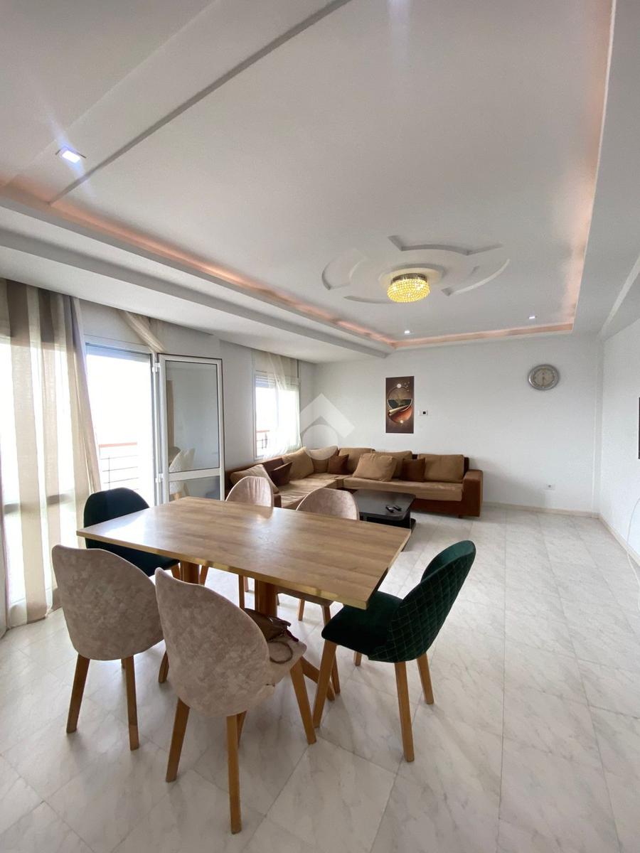 Dès l'entrée, on trouve une pièce de réception spacieuse et une salle à manger meublée avec raffinement, elle donne accès à un balcon.