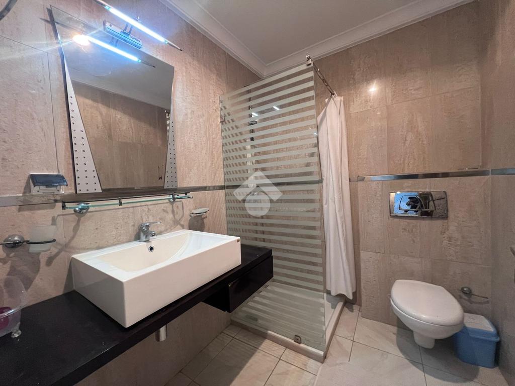La cuisine indépendante, fonctionnelle et bien équipée par hotte, plaque, four, micro-ondes et réfrigérateur encastré. Elle dispose également d’un séchoir.