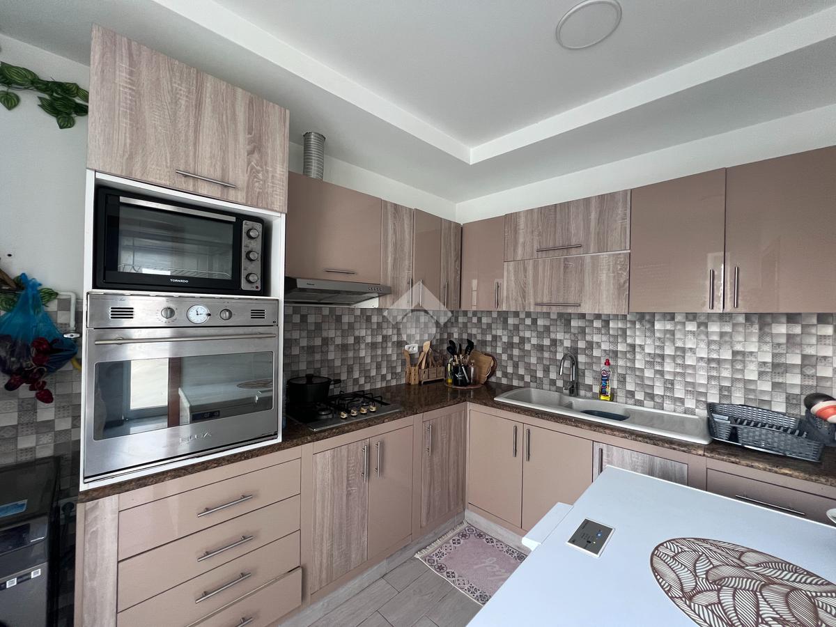 Entièrement équipée et fonctionnelle, la cuisine indépendante dispose d’une plaque de cuisson, d’une hotte aspirante et d’un four électrique. Elle communique directement avec la salle à manger et la cuisine d’été.